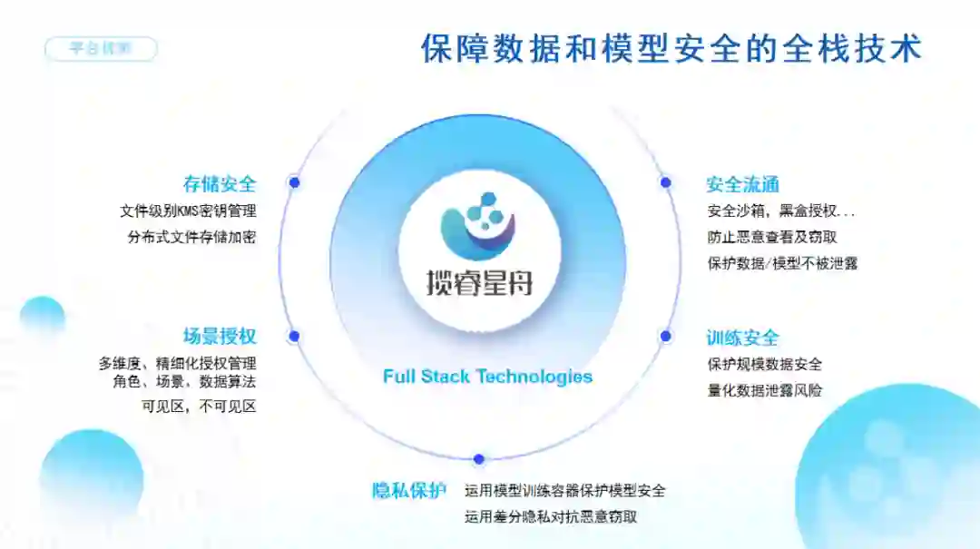 为了更好地解决 AI 发展的一些困境,翼方健数近日正式宣布上线隐私安全计算护航的 AI 服务平台——揽睿星舟。平台运用隐私安全计算技术,在保护数据和算法安全的前提下,汇聚行业及公共数据集,集约算力部署,集成包括软硬件在内的最新 AI 技术,提供全流程一站式服务。揽睿星舟用数据、算力、资金、技术和运营能力加速 AI 发展,赋能长尾的 AI 应用场景,充分实现人工智能供需之间的高质量对接。揽睿星舟这个项目源自于翼方健数在隐私安全计算在市场上与 AI 行业的痛点碰撞,结合了来自 AI 与数据协作过程中的安全保护案例、AI 供应商技术遴选案例、AI 招投标及比赛案例,能够满足基于需求与技术融合推动的一系列 AI 场景需求。