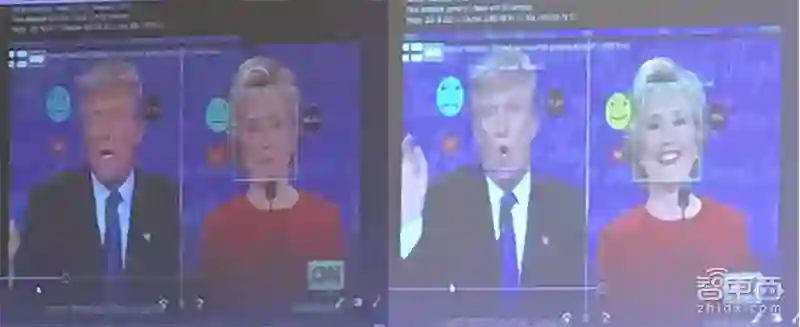 除了介绍相关算法外,Matti Pietikainen还展示了这些研究的一些应用场景,并分享了几个有趣的实例视频。比如机器可以在川普和希拉里的竞选视频中根据两人的动态表情变化实时分析出他们在那一刻的心情。
