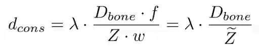对于每个骨骼,我们使用训练集中该骨骼的平均长度作为其实际长度,然后利用网络输出的深度计算其在二维图像中的最大长度如下: