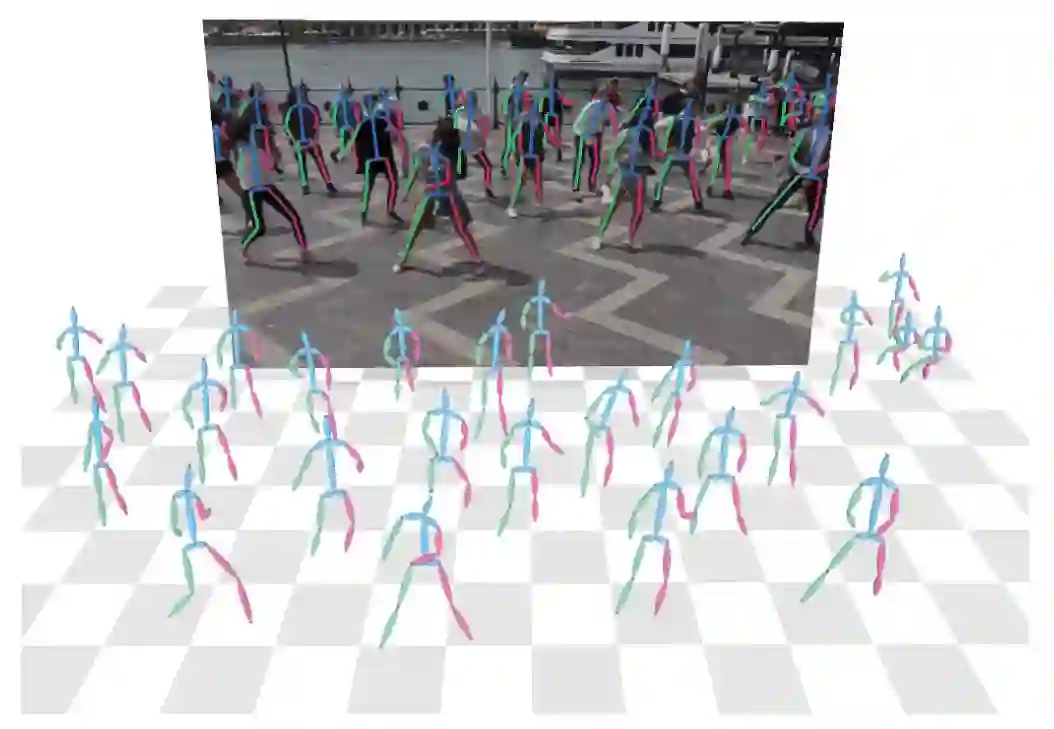 当前大多数方法对检测到的人体区域进行裁剪后,分别估计绝对位置。有的方法利用检测框的大小作为人体尺寸的先验,通过网络回归深度信息,但是这样的方法忽略了图像的全局信息;另外一些方法基于一些假设,通过后处理的手段估计人体深度,如地面约束,但是这样的方法依赖于姿态估计的准确度,而且很多假设在实际场景中无法满足(比如人脚不可见)。