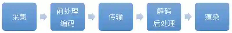 RTC 从功能流程上来说,包含采集、编码、前后处理、传输、解码、缓冲、渲染等很多环节,上图展现了一次 RTC 通信的简要流程。每一个细分环节,还有更细分的技术模块。比如,前后处理环节 有美颜、滤镜、回声消除、噪声抑制等,采集有麦克风阵列等,编解码有 VP8、VP9、H.264、H.265 等等。