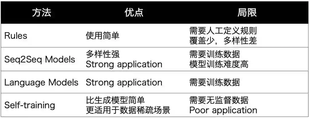 总的来说,引入噪声的DA方法使用简单,但会对句子结构和语义造成影响,多样性有限,主要还是提升鲁棒性。