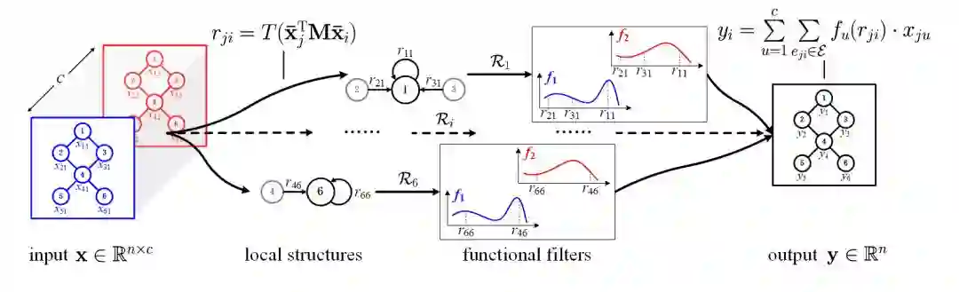 由于局部输入的无序性和维度的可变性,传统卷积网络很难处理这种处于非欧几里得空间的数据。为了解决这个问题,时空大数据处理团队(STDAL)的常建龙博士、向世明研究员、潘春洪研究员等人提出了结构感知卷积神经网络来处理一般结构的数据,而不是仅局限于处理欧氏空间的数据。根据“数据=特征+结构”的基本假设,我们对传统卷积做了两个泛化来达到以上目的。第一,将离散的有限维卷积核泛化为连续的无穷维卷积核,即单变量函数;第二,将结构信息建模到卷积中。算法流程图如下图所示。大量的实验证明,结构感知卷积网络可以高效地在GPU上处理各种基于不同结构数据的任务,例如,图像分类和聚类、交通流量预测、分子活性预测等等。