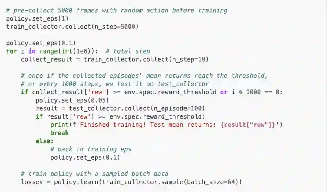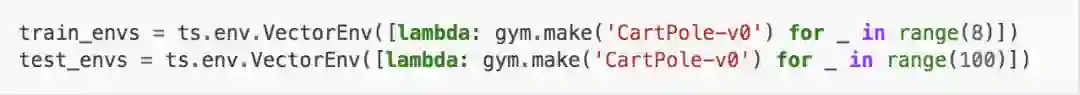 习惯上使用OpenAI Gym,如果使用Python代码,只需要简单的调用Tianshou即可。