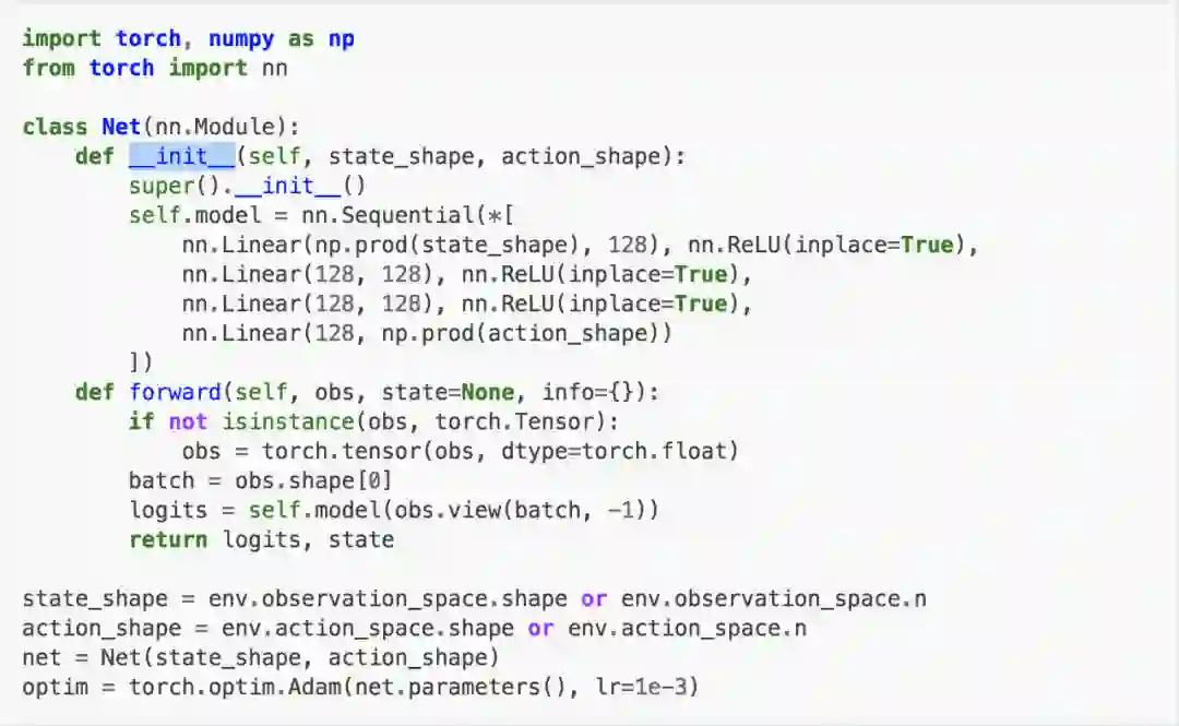 只要完善了这些给定的接口就能在100行之内完整实现一个强化学习算法。