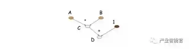 当前四步执行后,程序并没有A、B、C、D的值,仅仅是构建了由这四个符号构成的计算图,如下图所示: