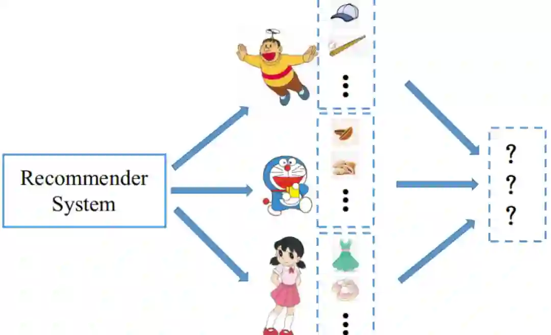 描述:推荐系统不仅仅是服务于用户,为用户推荐可能喜欢的物品,也要考虑到物品(本质上是其背后提供者)以及平台自身的利益,以求实现三方共赢。顾名思义,就是同时考虑用户方、物品方甚至平台方等多个从推荐中获利的角色。比如招聘网站上,求职者方的公平可能定义为:相同的学历、能力可以被推荐类似的工作,而不受国籍、种族等偏见;招聘方(在网站上投放招聘信息的公司等)的公平可能定义为:系统可以将他们的招聘信息推给优质的求职者,而不会因为公司的背景等因素,只将招聘信息推给不太合适的求职者;招聘网站(推荐系统)需要促成更多的交易,从中获利(广告费等),否则,求职者、招聘者就会去别的招聘网站。在电商场景下亦是如此,读者可自行分析。当然实际情况更加复杂,还要考虑很多因素,比如某些物品是收取过高昂的推广费的,在推荐的时候应该给这样的物品更多的曝光率,同时也要尽量降低给用户带来的不好体验。在之后的文章中会结合论文详细介绍。