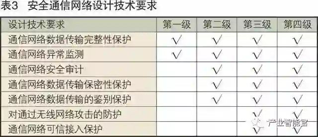 安全通信网络指对定级系统安全计算环境和信息安全区域之间进行信息传输及实施安全策略的相关部件。安全通信网络按照保护能力划分为第一级安全通信网络、第二级安全通信网络、第三级安全通信网络和第四级安全通信网络,安全通信网络设计技术要求逐级增强,各等级要求如表3。