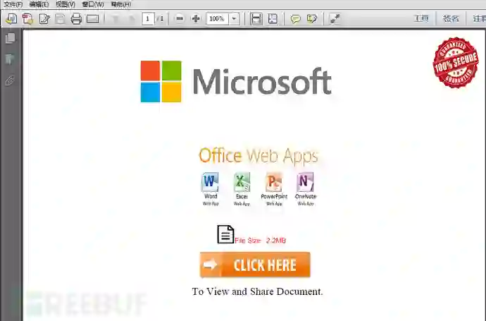 PDF会伪装成office 应用下载,当你点击下载后,很可能会是带有恶意的文档文件或者是恶意可执行文件