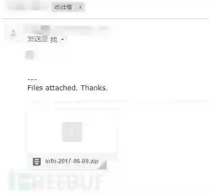 攻击者,通过社工(社会工程),将邮件发送到受害者邮箱中,以下是攻击者发送来的邮件。