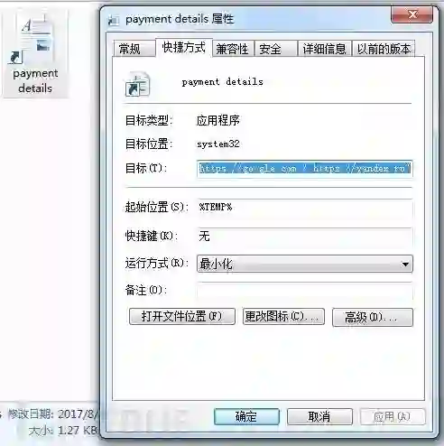 附件即为压缩后的样本,解压之后是一个单独的lnk文件,具体信息如下图
