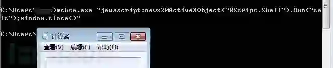 mshta.exe"javascript:new%20ActiveXObject("WScript.Shell").Run("calc");window.close()"
