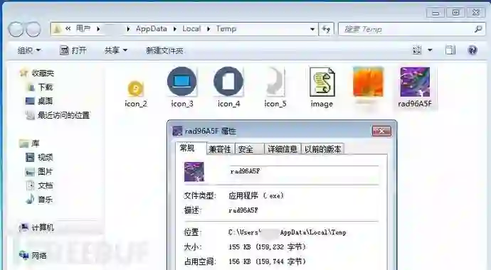 双击执行lnk文件,%temp%下生成的文件如下,其中rad96A5F.exe就是勒索病毒,