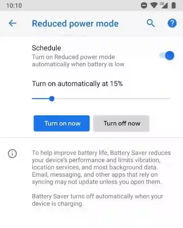 Android P DP1 取消了这个设定,开启省电模式后,我们不会收到任何不适的视觉反馈。除此之外, 省电模式的开启阈值也得到了优化,滑动滑块即可将其设置为 5% 至 75% 电量区间内任意数值处开启。