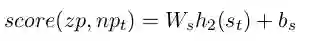 然后我们将最后隐层的输出当做输入到一个维数为2的得分层: