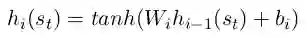 我们的智能体是由一个前馈神经网络构成,其包括了两个隐层,每个隐层的激活函数都是tanh。对于每一层,我们得到其输出: