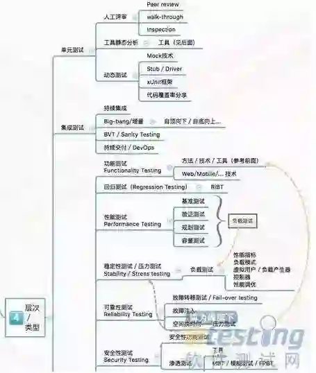 · 测试层次和类型:单元测试、集成测试、系统测试、验收测试等;