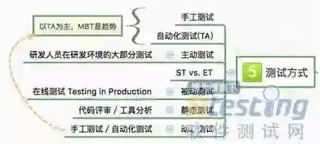 · 测试方式:手工 vs. 自动化的,静态 vs. 动态,主动的 vs. 被动的