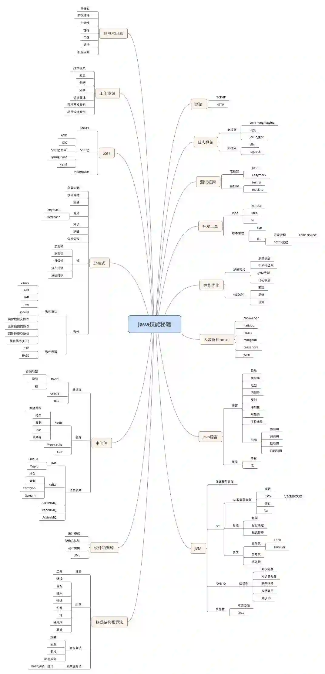 本文是笔者多年来积累和收集的知识技能图谱,有的是笔者原创总结的最佳实践,有的是小伙伴们的分享,其中每个秘籍图谱里面的内容都是互联网高并发架构师应该了解和掌握的知识,笔者索性把这些图谱收集在一起,并且归类便于查找和学习,希望能够帮助到每一位想成为架构师或者已经是架构师的小伙伴,这里我们的标题“史上最全的架构师图谱”是本文的目标,作者计划把这篇文章作为一个开放性的文章,如果读者发现更多的图谱,请联系作者本人,我们把更多的图谱、思维导图汇集在其一起,最终一定能成为互联网上“史上最全的架构师图谱”。