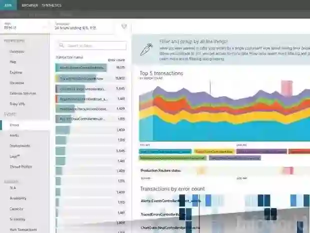 下图是国外的老牌APM厂商的New Relic,使用New Relic企业可以迅速从多个角度查看并解决应用中出现的错误: