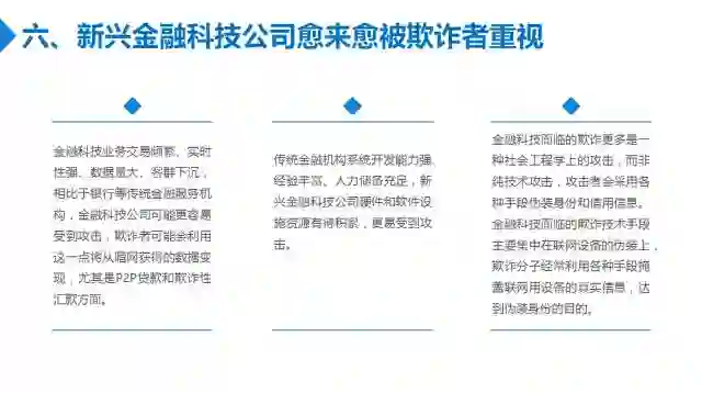 有光的地方总有影子。金融蓬勃发展的同时,也无时无刻不面临着欺诈风险,尤其是新兴的金融科技公司,它们正受到来自欺诈者越来越多的关注。据金融欺诈呈现出规模大、涉及业务环节多、手段多样、隐秘性强、移动化、组织化等诸多特点。