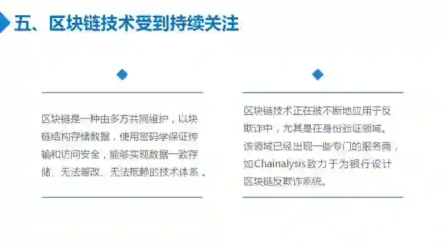 报告还作出了对金融反欺诈技术发展趋势的展望:人工智能、云计算、生物识别和区块链等技术将被越来越多地探索。