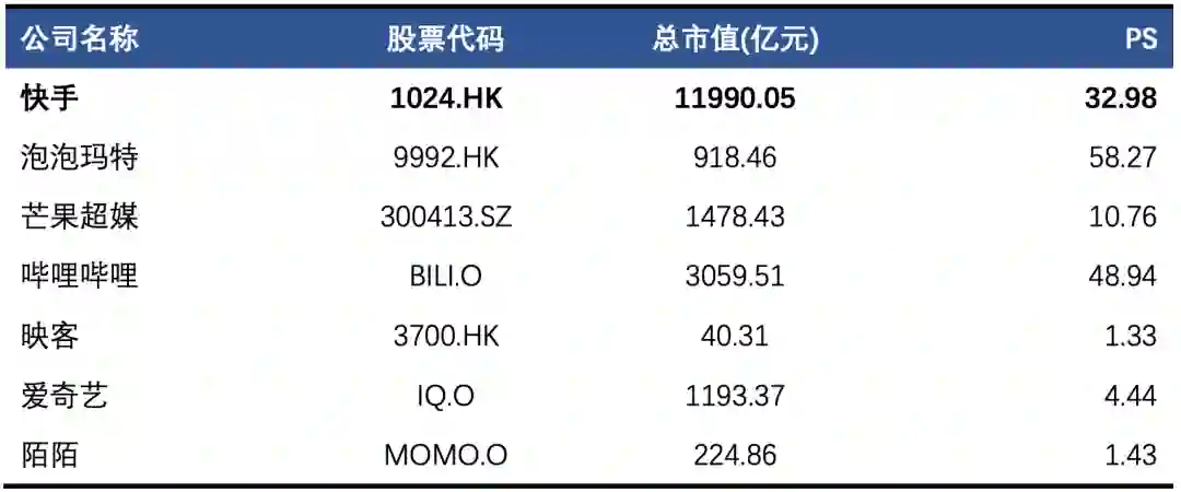 表1:快手与可比公司估值PS,截止2月9日收盘