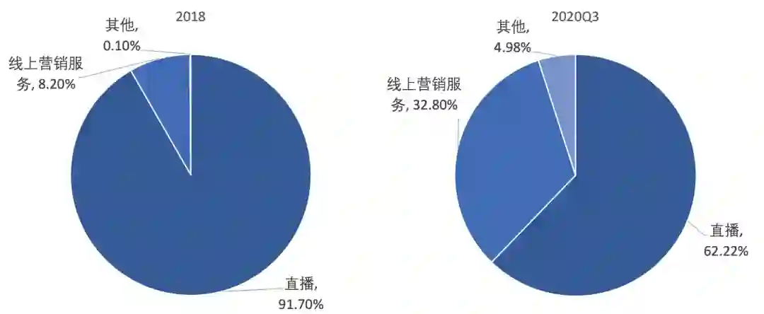 图6:快手收入结构的变迁,2018与2020Q3