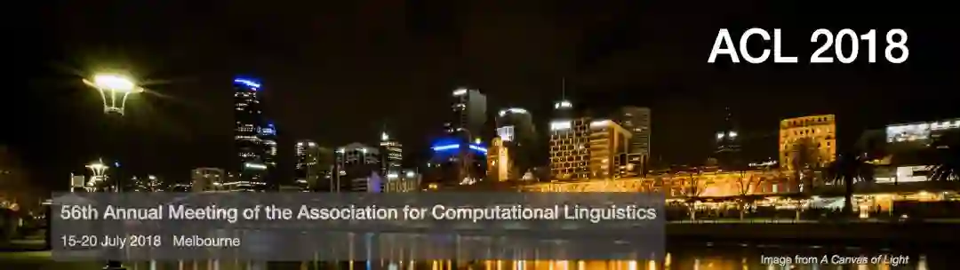 2018 年 7 月 15 日至 20 日,自然语言处理领域的顶级会议 ACL 2018 在澳大利亚墨尔本举行。本次大会共收到了 1018 篇长文和 526 篇短文的提交,相比去年有显著的增长,在规模上是名副其实的学术界的盛会。其中,长文有 256 篇被录用,录用率为 25.1%;短文有 125 篇被录用,录用率为 23.8%;总体的录用率为 24.7%。