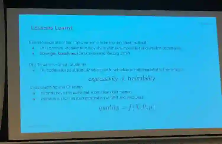 笔者在本次会议中看到,深度学习继续在自然语言处理的领域中发挥着重要作用。正式会议的上午和下午是 Oral 报告。笔者和大家一样,在各个不同 Track的会场奔波。Oral 的报告都非常有启发性,如来自 Google AI 的工作 The Best of Both Worlds: Combining Recent Advances in Neural Machine Translation,通过将 RNN 的时序建模能力和 Transformer 中的“块”的概念及最新的训练技术结合起来,再次刷新了机器翻译上的最佳性能,同时也给笔者很大启发:虽然 Transformer 的提出使人们惊讶于 Self-Attention 赋予模型的性能,但是这不一定代表 RNN 的表达能力是弱于 Self-Attention 的;而在结合了 Transformer 中的一些最新的技术后,RNN 也表现出了更优越的性能,使人重新思考模型的表达能力与训练之间关系。