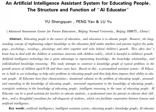 关键词:人工智能;育人助理;育人;知识图谱;AI好老师