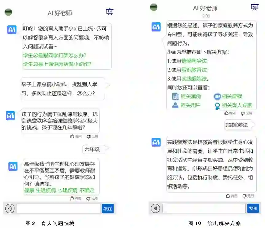 AI好老师所聚焦的育人问题指在培育孩子过程中出现的影响孩子身心健康发展问题,这些问题是教育教学过程中常见的而非病态化的,并常通过孩子的问题行为表现出来。这种问题行为按詹妮弗•马格斯等(Maggs&Galambos,1998)的定义,就是偏离家庭或社会标准,对个人或社会构成一定风险的行为,如与同学打架斗殴、总是违反课堂纪律、早恋、过分崇拜演艺明星等。这些是AI好老师要助力解决的。
