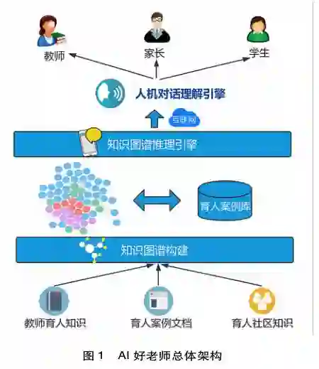 要想实现上述理念和目标,AI好老师需建立0-18岁儿童成长过程出现的典型问题、问题背后的原因及问题解决方案的知识图谱及案例知识库,并采用人机智能对话的方式进行交互,其总体架构如图1所示。