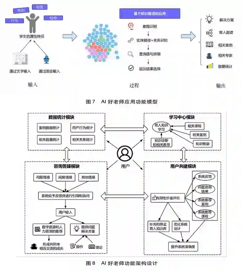 基于上述体系架构,AI好老师的应用功能模型主要包含三部分:用户输入、系统处理和系统输出(见图7)。