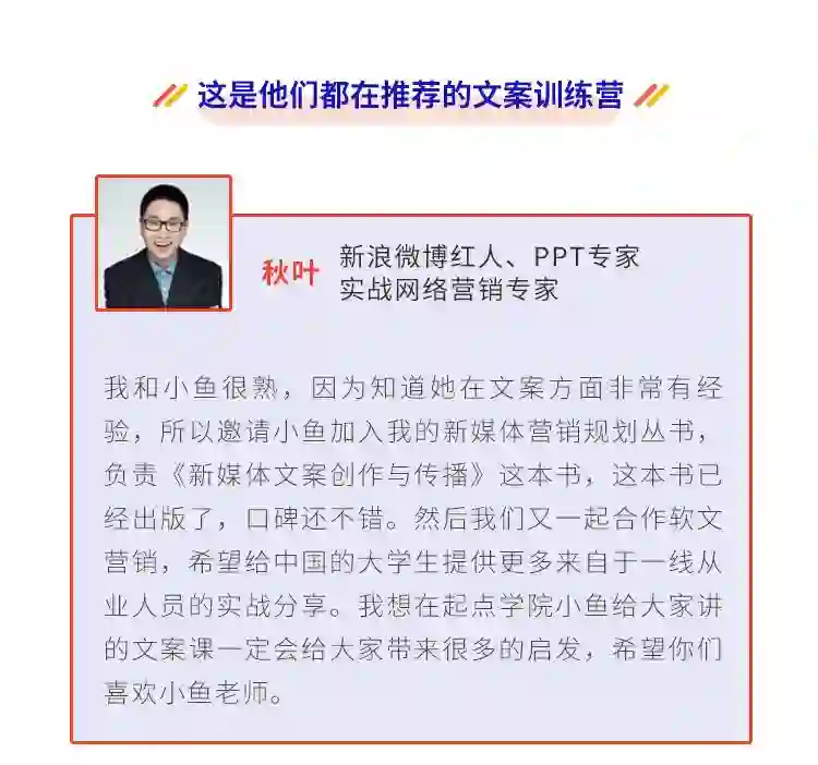 文案训练营的课程老师,是叶小鱼老师