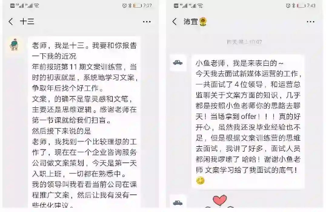 完全0基础的小白同学,4周后开始文案兼职,还有同学直接换了更好的工作。