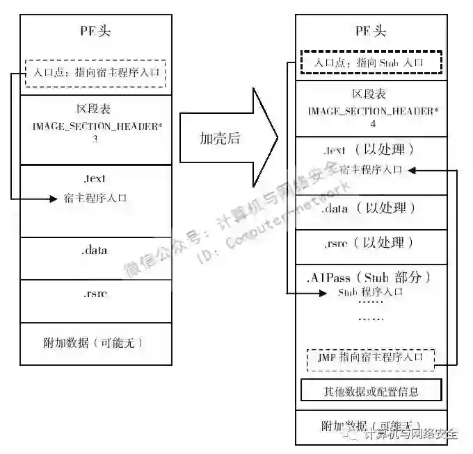 图1 加壳前与加壳后程序的状态