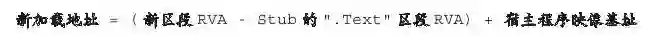 我们都知道,系统的重定位操作修复的只是基址部分,但是在我们将Stub移动到新的区段中后,其代码与数据所在的文件偏移与虚拟偏移全部都会发生巨大的变化,因此可以按照以下公式来计算新的加载地址,从而修复这个问题。