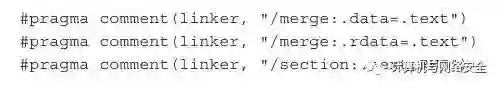以上代码的前两行的意思是将.data、.rdata这两个区段合并到.text区段中,第三行的意思是修改.text区段的属性为可读、可写、可执行。