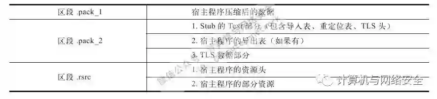 遵循以上流程,加壳后的目标程序有3个区段,其组成结构如图9所示。