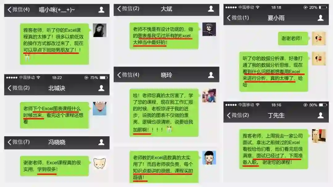 为了让每个学员轻松学会Excel,真正提高工作效率,我们和雅客老师光是课程大纲就更改了10次,课程内容也反复打磨了6个多月。我们希望每个职场人,都能掌握一些Excel技能,提高工作效率不加班。