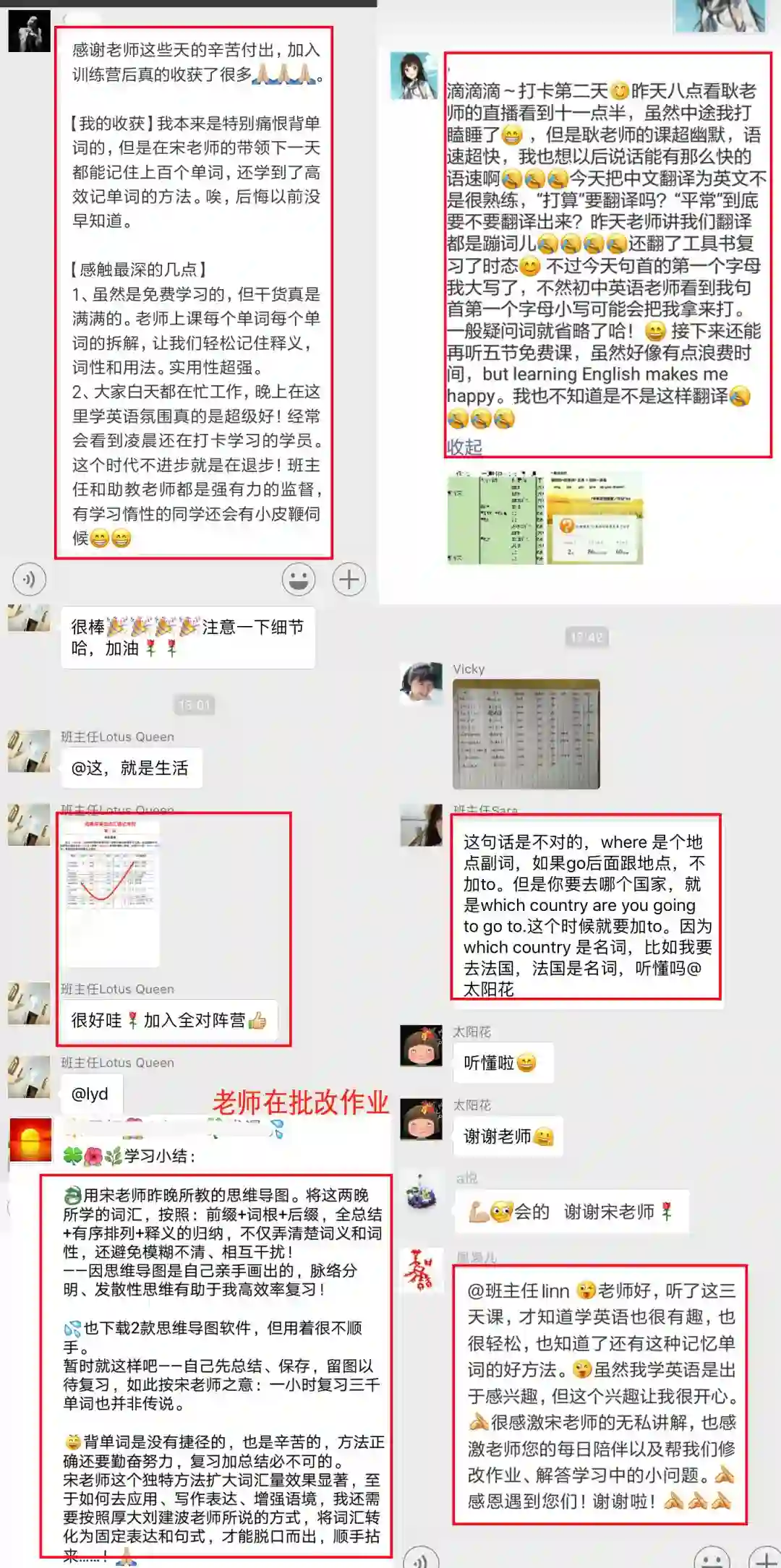 这里的学习氛围格外浓郁,你会发现学员要么在交作业,晒学习成果,要么在问班主任问题。大家互帮互助,学英语不再孤单。