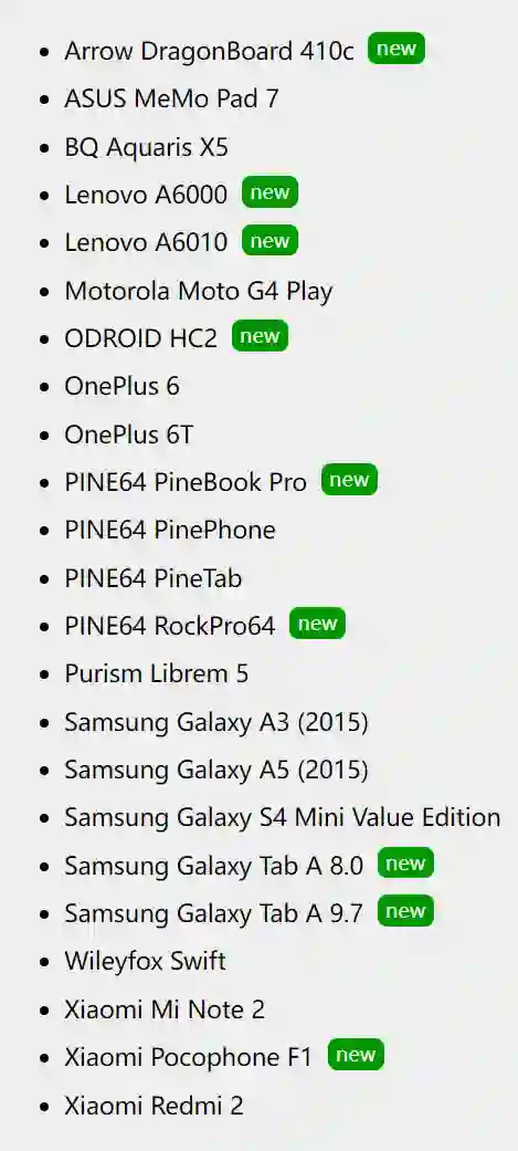 postmarketOS v21.12 支持的设备
