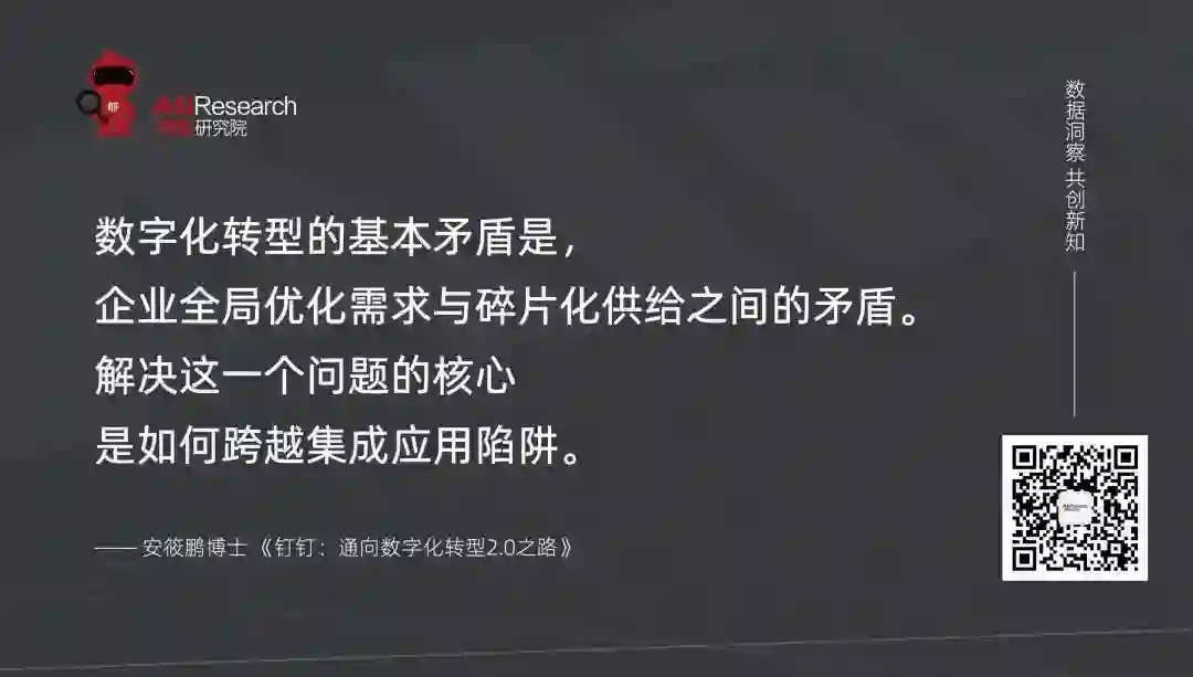 数字化转型的基本矛盾是,企业全局优化需求与碎片化供给之间的矛盾,解决这一个问题的核心是如何跨越集成应用陷阱。
