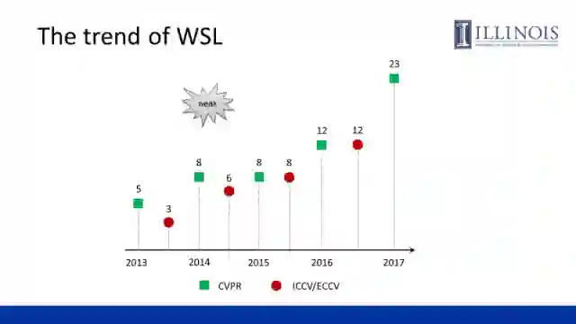 据统计,从2013年至今,“weak”作为关键词在计算机视觉的三大顶会上(ICCV、ECCV、CVPR)发表的论文数量逐渐增加,“弱监督”也受到了越来越多的关注。