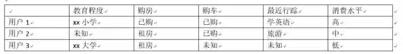 来我店的用户可能是穷学生、富婆、牛奋、各种角色,所以我都不知道是从收入、还是职业、还是籍贯来分类了。于是我干脆设计了一张表,然后去找了一个信用中介买了些数据。