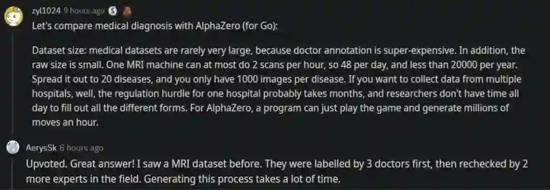 实际上,致力于 AI 与医疗融合的研究者并不在少数,也有很多项目为此投资,但该领域仍然存在一些实际问题。近日,Reddit 上的一篇帖子将 AI 医疗与 AlphaZero 进行了对比,引发了关于 AI 医疗问题的诸多讨论。