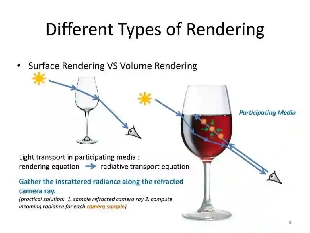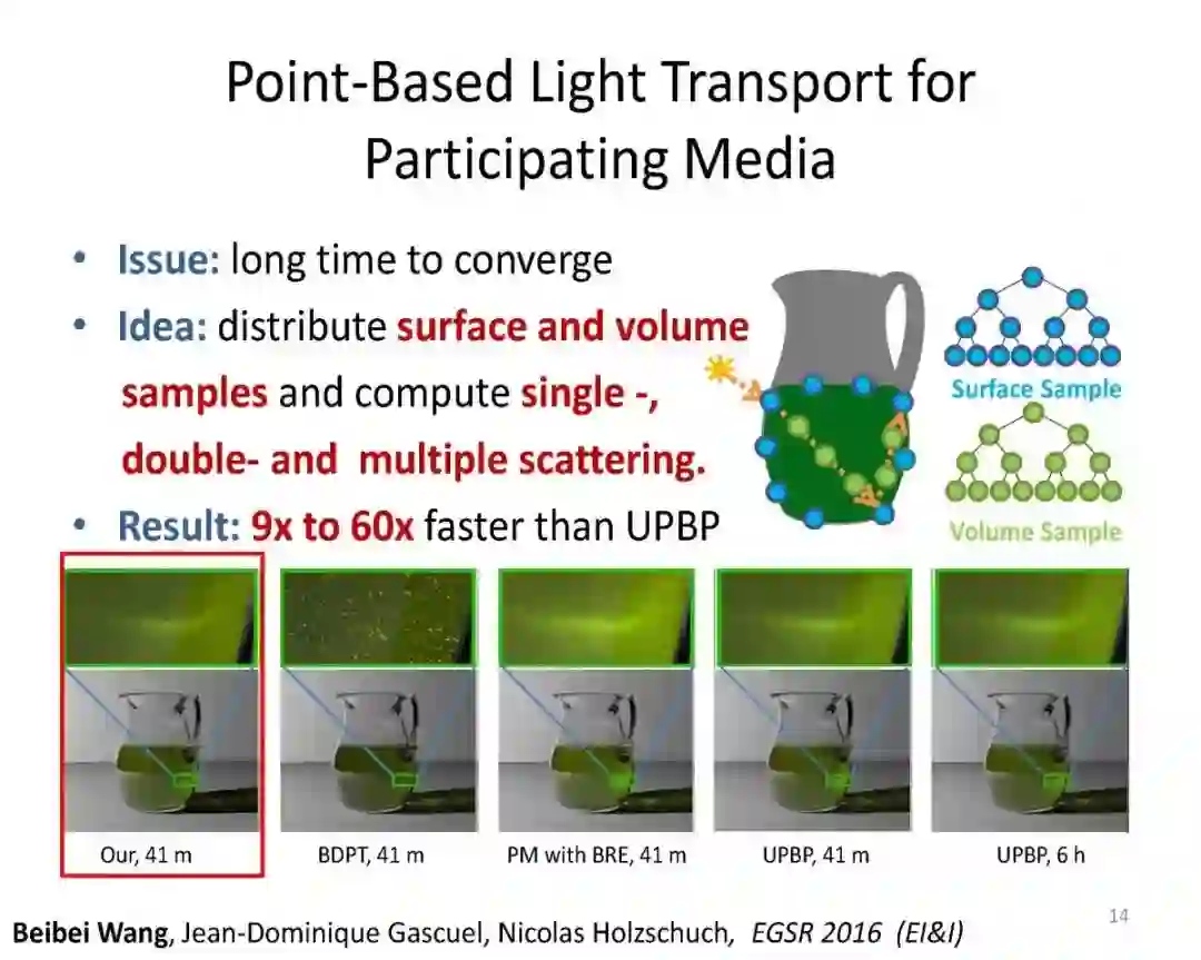 1.将基于点的渲染方法从表面渲染其扩展到参与介质中的光线传递。