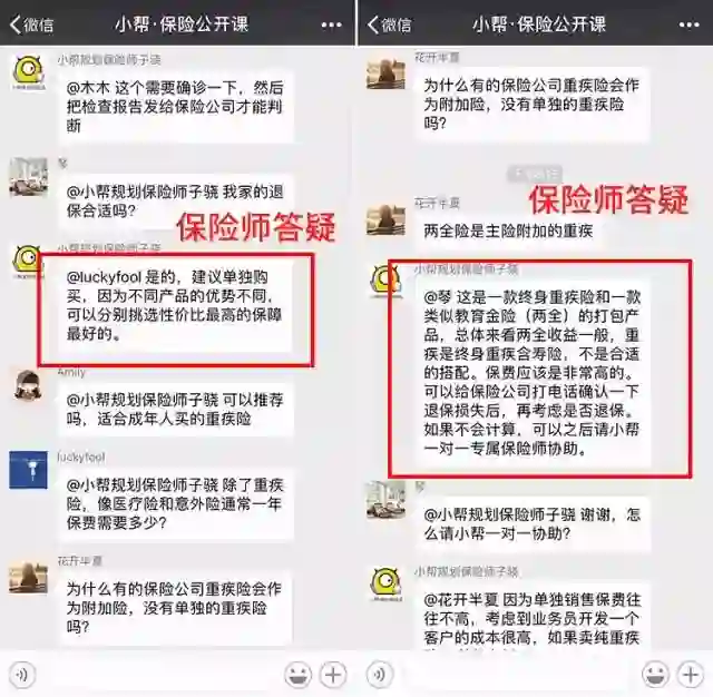 有任何关于保险的疑问,都可以在群内提出,小帮团队都会认真解答;