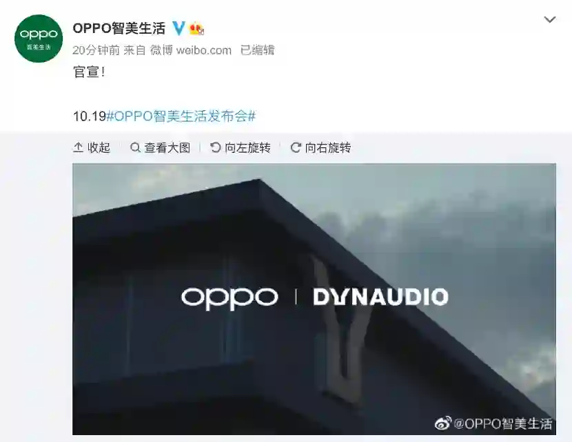 36氪获悉,今天上午,@OPPO智美生活官方微博发布了OPPO与北欧高端音响品牌丹拿达成合作的海报。暗示10月19日的“OPPO智美生活发布会”期间发布的OPPO首款智能电视和旗舰级TWS耳机OPPO Enco X或将有丹拿技术加持。